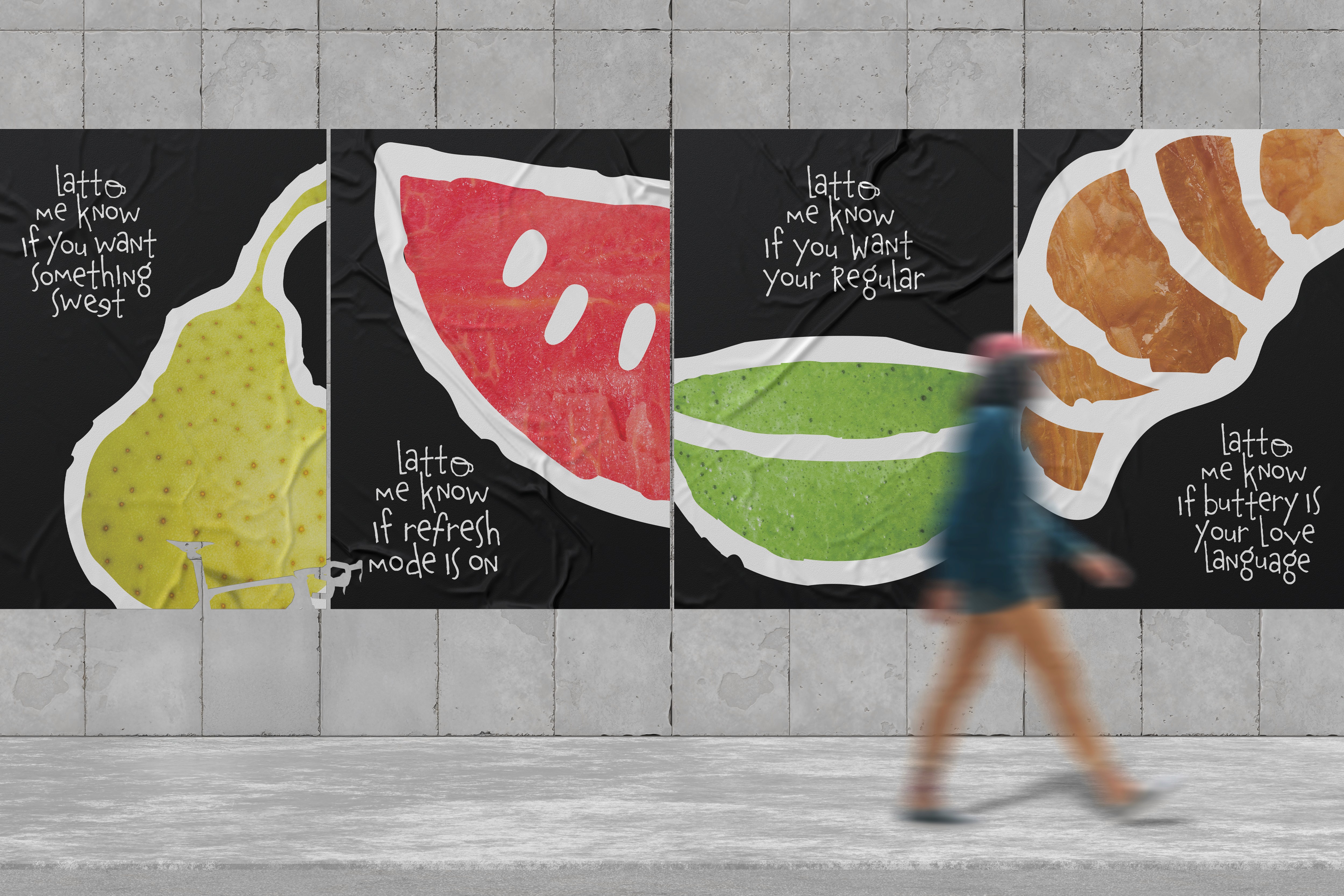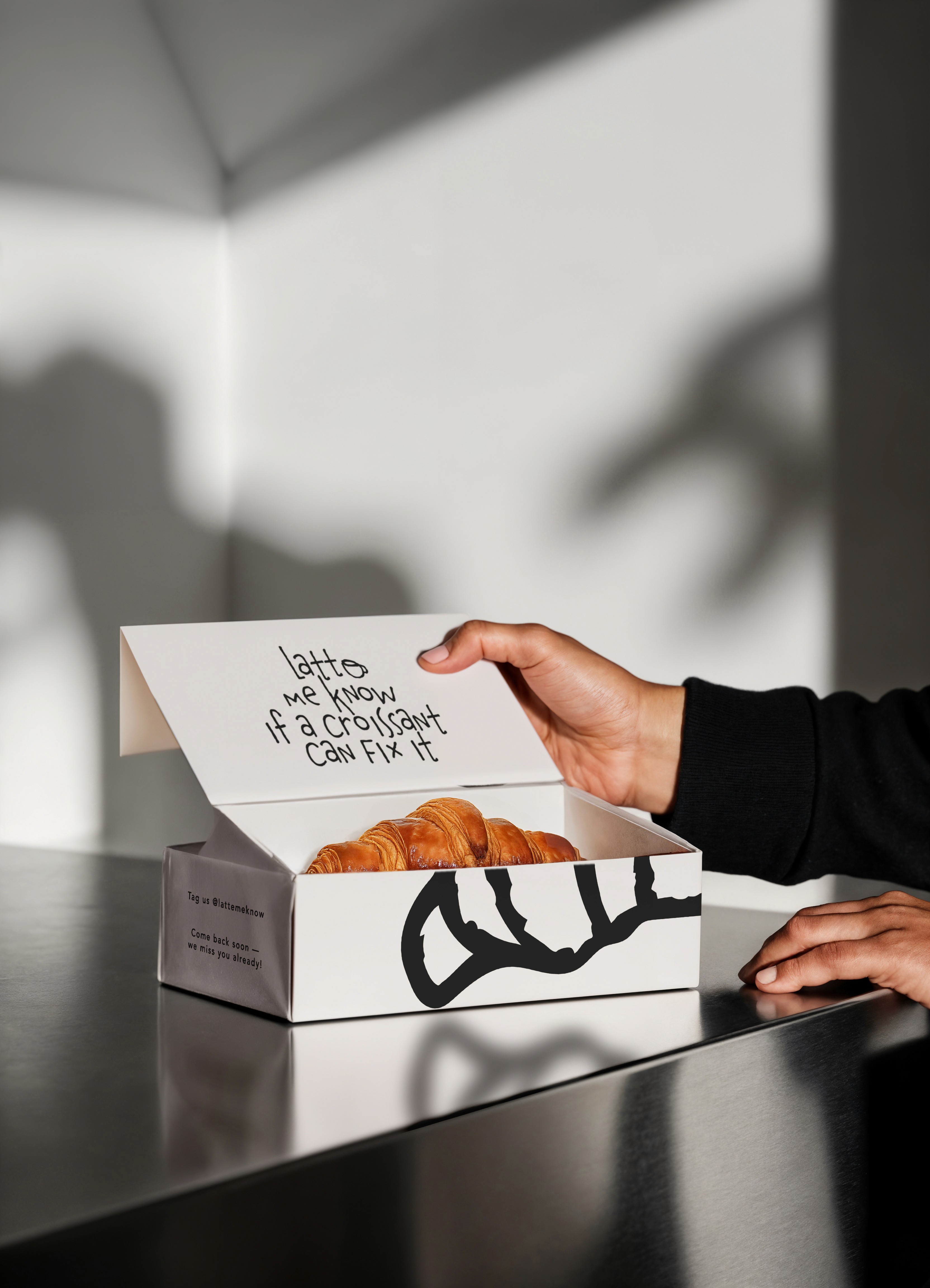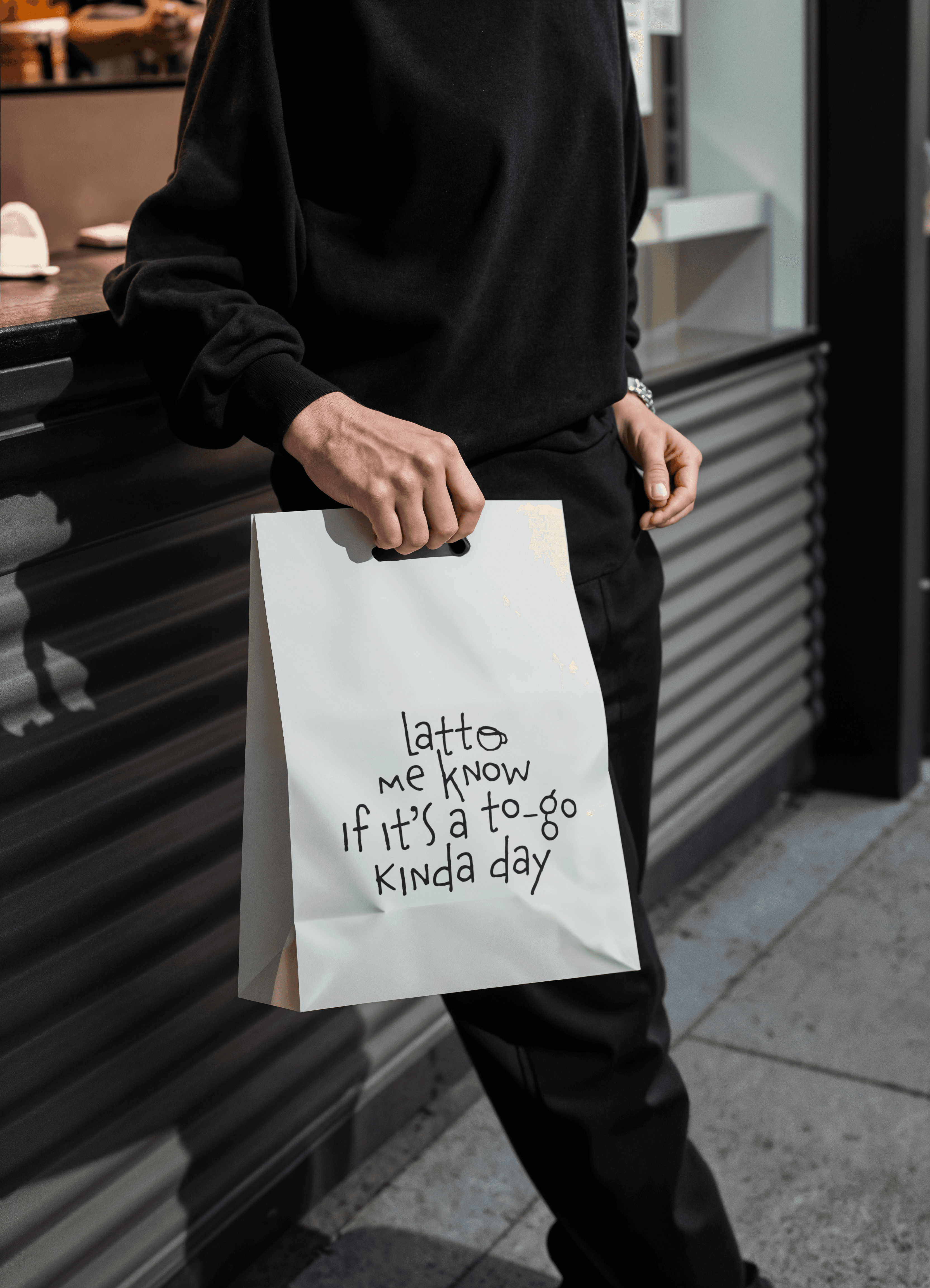 As a result, the typeface became the foundation of the logo, carrying both the product and the brand's meaning. The idea also included an unconscious continuation of the sentence when seeing a logo, for example: "Latte me know if you need a hug" or "Latte me know if you need a regular", implying that the brand and its staff are ready not only to make drinks from the menu but also to offer a hug, listen, and recognize the customer's usual order. Human language and warmth were priority for the client.
