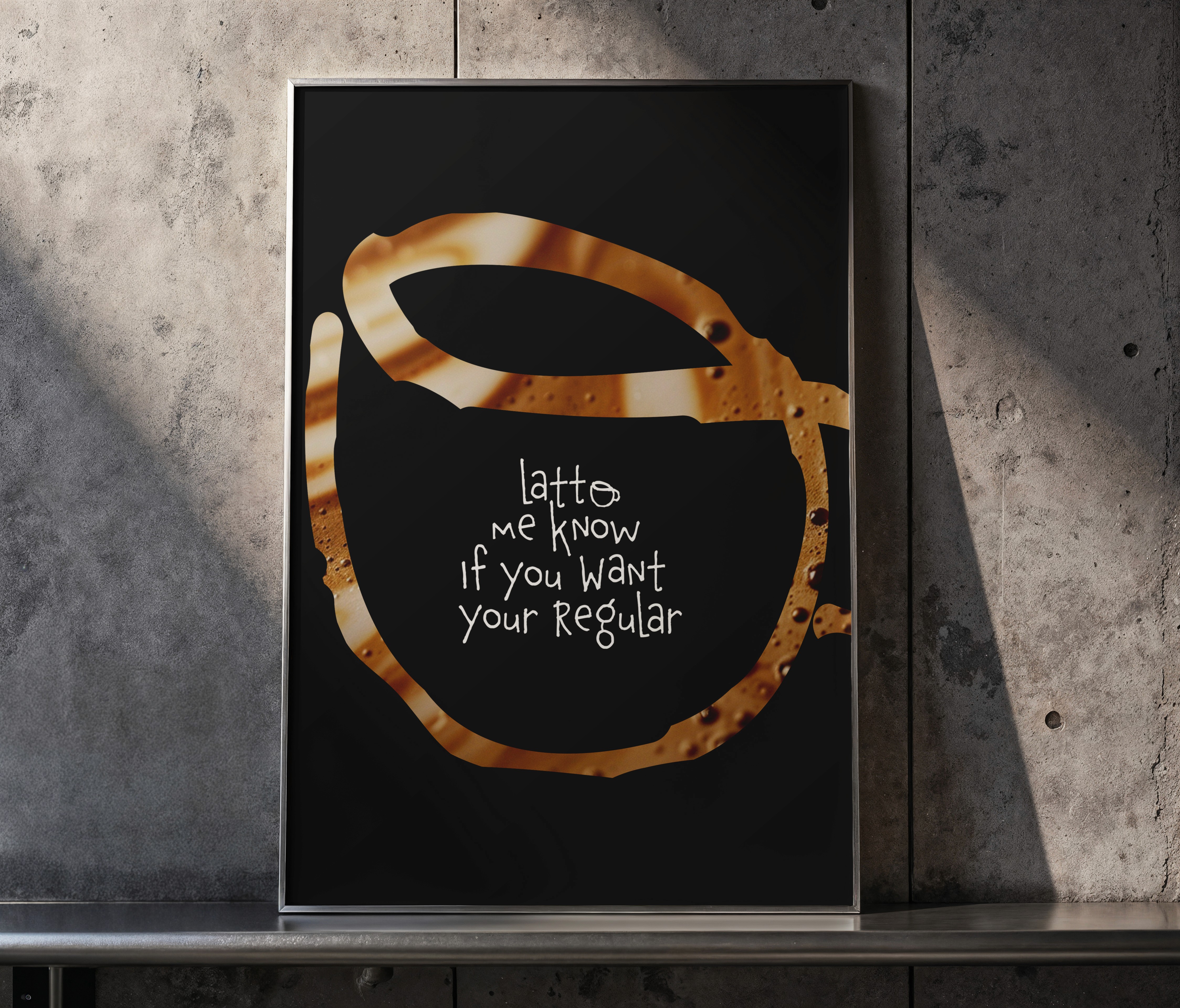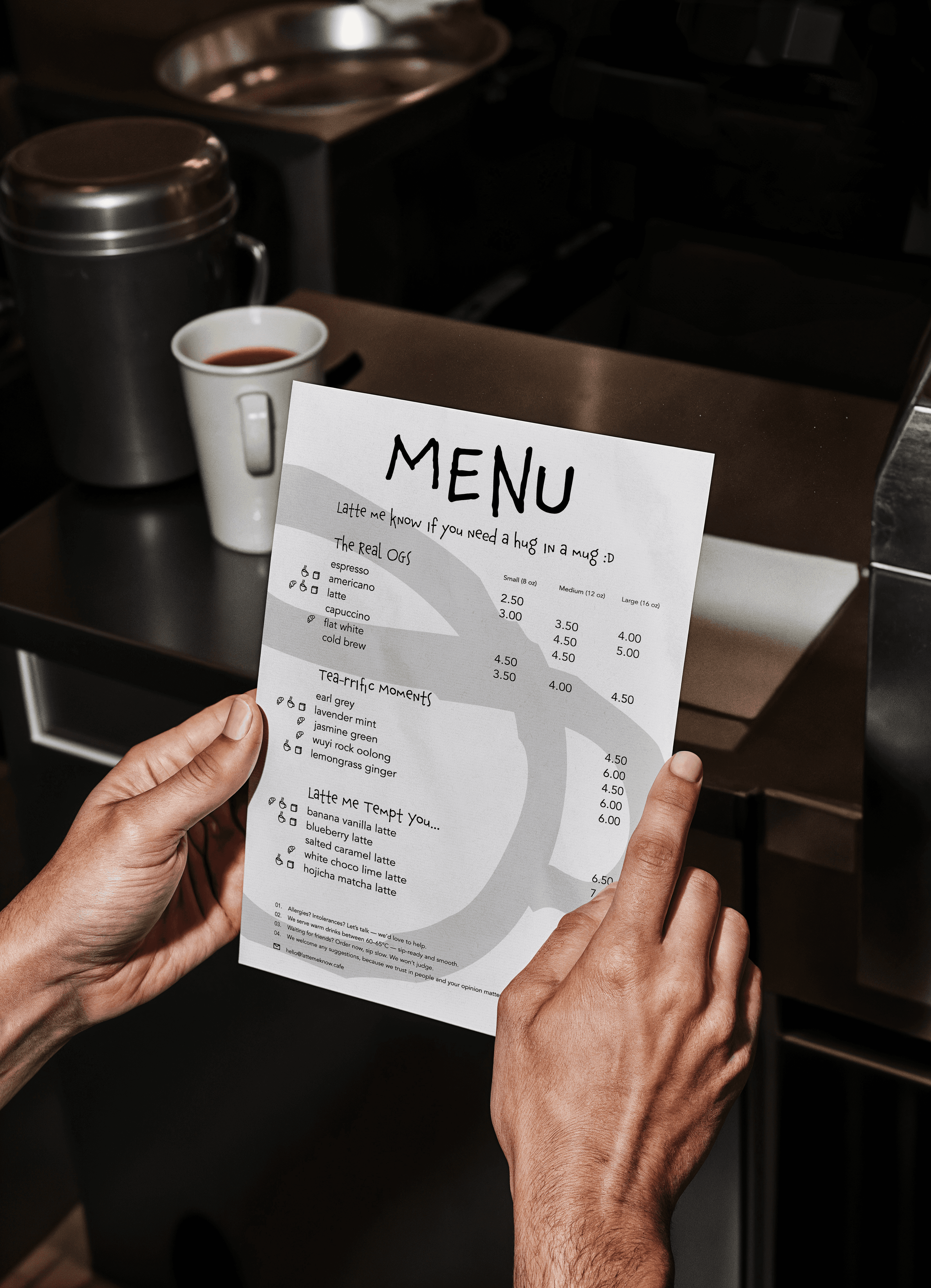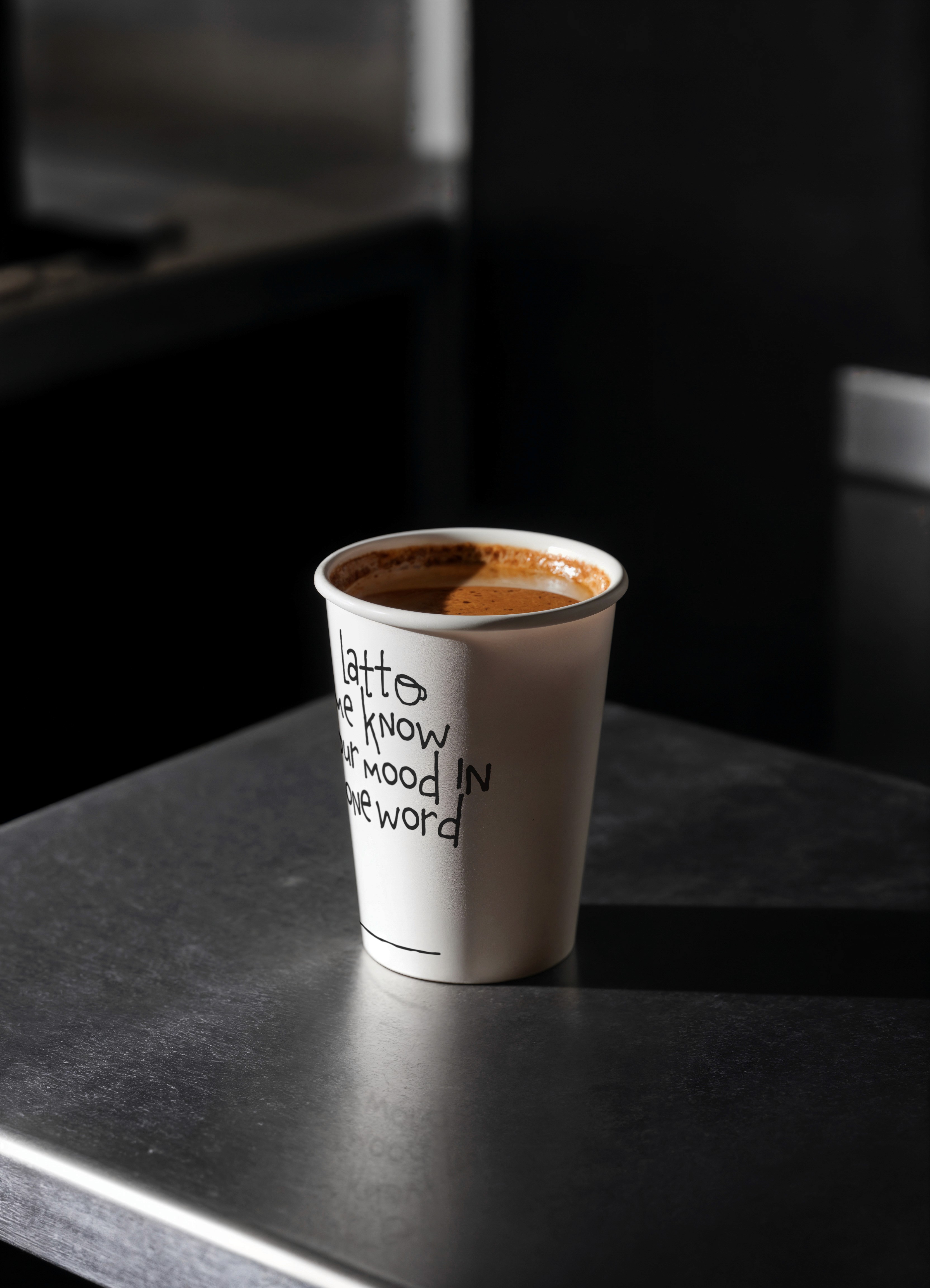 As a result, the typeface became the foundation of the logo, carrying both the product and the brand's meaning. The idea also included an unconscious continuation of the sentence when seeing a logo, for example: "Latte me know if you need a hug" or "Latte me know if you need a regular", implying that the brand and its staff are ready not only to make drinks from the menu but also to offer a hug, listen, and recognize the customer's usual order. Human language and warmth were priority for the client.