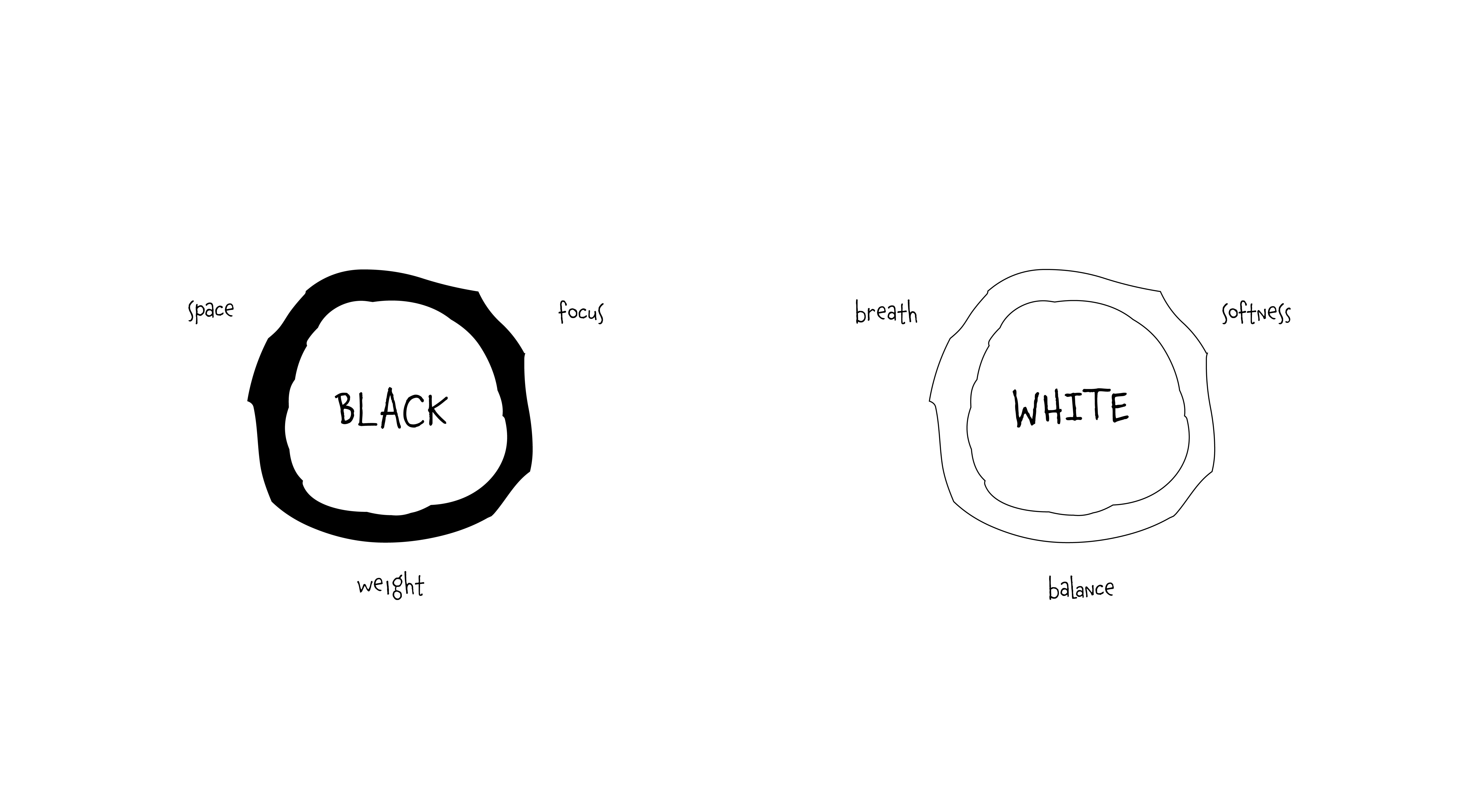 Black and White form the foundation of our visual identity. In color theory, black anchors and defines. It creates sapce, adds weight and depth, and bring focus. White introduces breath, softness, and balance. Blakc and White do not tell people what to feel, they give space for their own emotions, moods, and moments. It's calm, grounding, and honest.